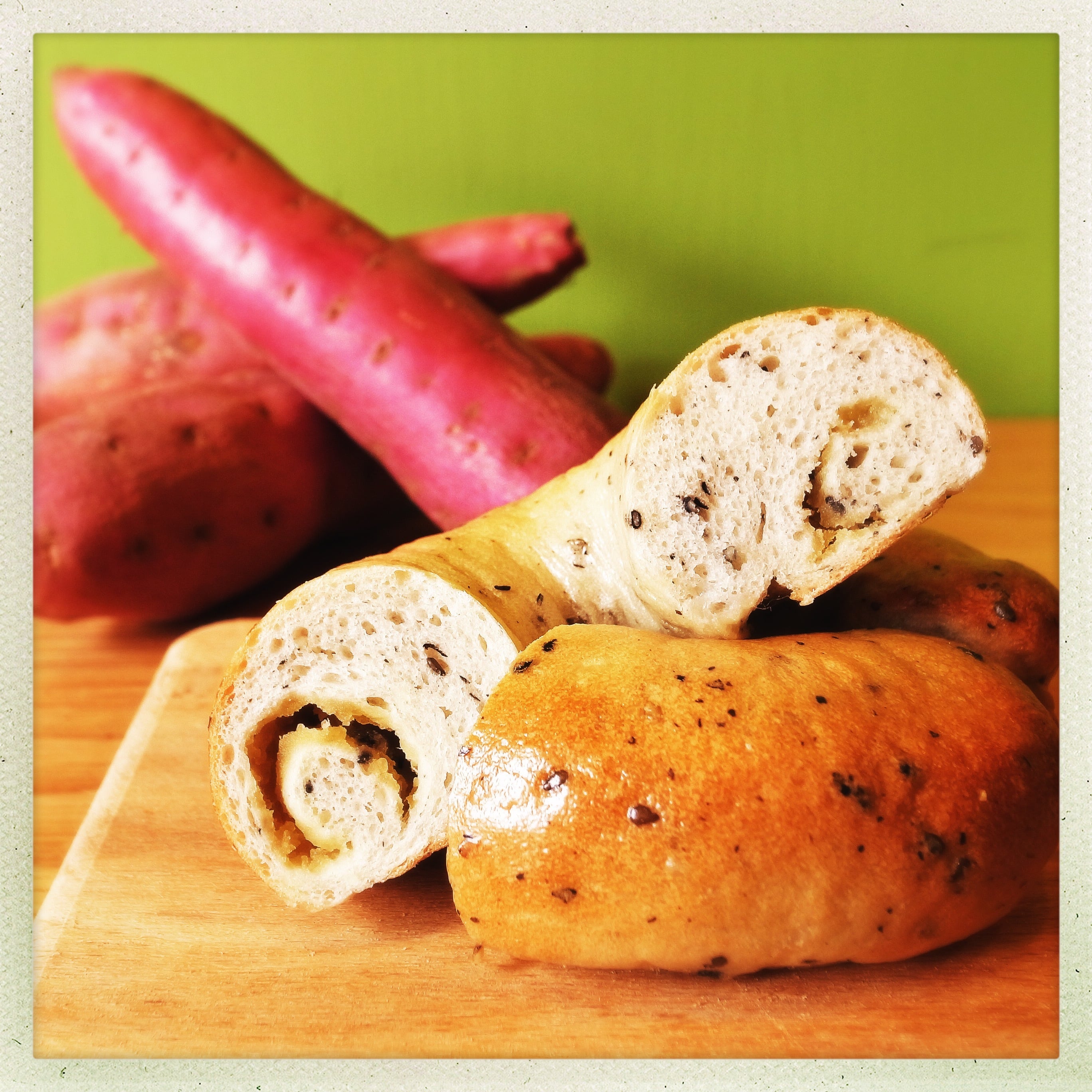 北海道産小麦粉、さつまいも、鳴門金時あん、有機黒ごま、生砂糖、ゲランドの塩、ドライイースト