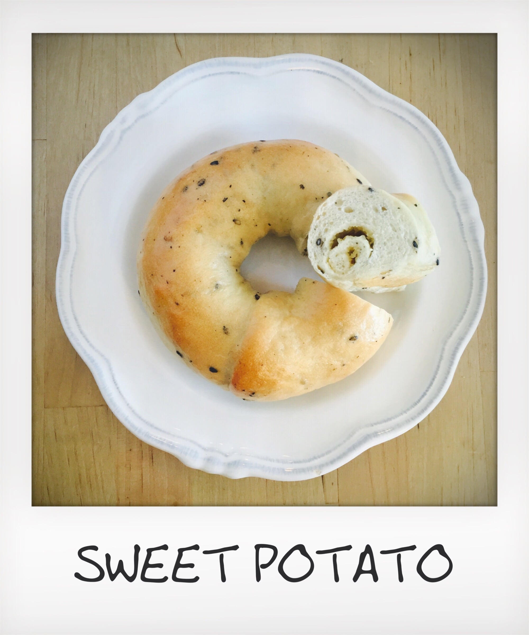さつまいもと有機黒ごまを生地に混ぜてモチモチ食感に。さらに「鳴門金時芋あん」もベーグルの中にぐるっと入って美味しさ倍増です!